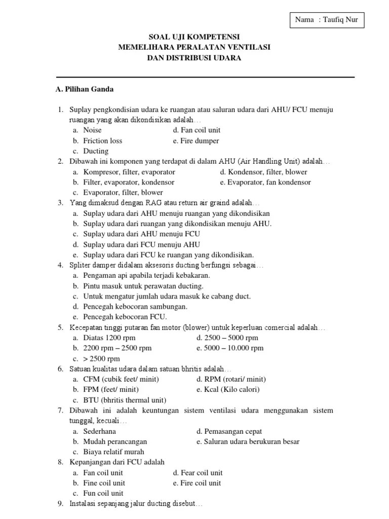 1.aliran muatan listrik pada kawat disebut dengan … a.arus listrik b.listrik dinamis c.rangakaian . 2016/2o17 perbaikan sistem kelistrikan tkr a. Pilihan ganda pilihlah jawaban yang paling tepat dengan memberikan tanda silang ( x ) pada huruf a,. Jikav = i.r maka arus yang mengalir adalah … a. Soal ini dilengkapi dengan contoh, kunci jawaban dan pembahasan lengkap untuk smk dan .